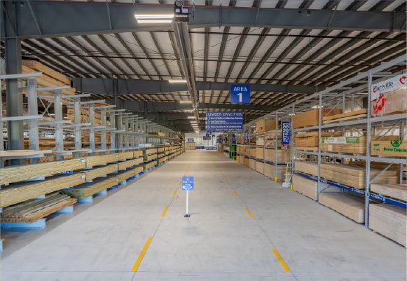 Drive through 36,000 square feet of building materials.