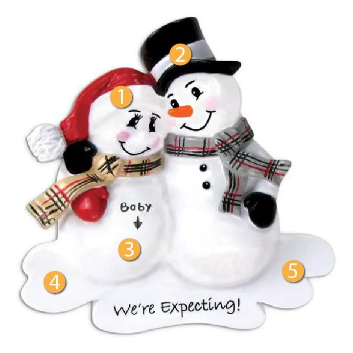 PolarX ornaments are the perfect way to create lasting, loving memories with your family and friends. Their expert style of personalization/customization gives you the opportunity to add any sentiment in a personal and unique way that is sure to touch the hearts of your loved ones. PolarX Personalized We're Expecting Snowman Ornament is a great addition to your Christmas tree for anyone celebrating a soon-to-be new arrival. This ornament features a snowman family with a baby on the way and the message, "We're Expecting!" The open white space can act as a place for you to write a name or special message. Great gift idea for a family member or friend who is expecting!