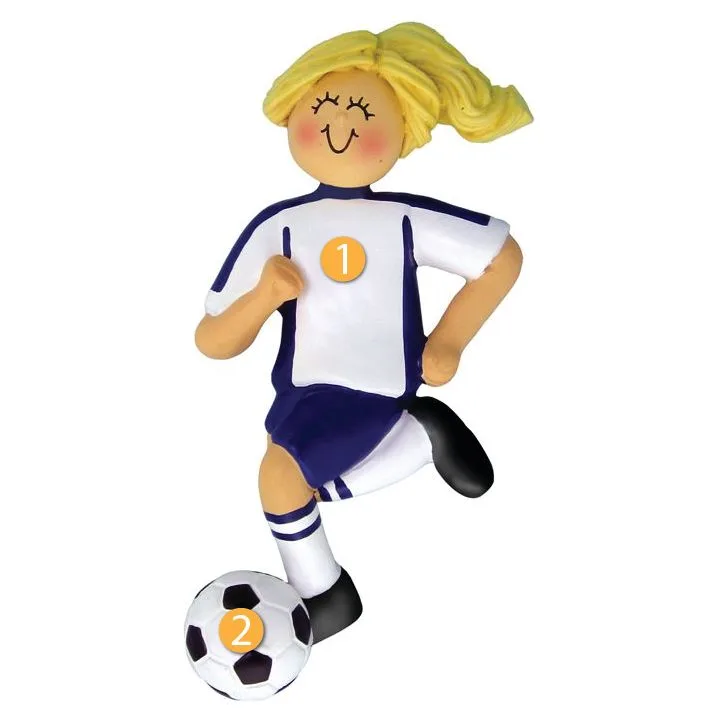 Ornament Central Personalized Blonde Female Blue Soccer Ornament