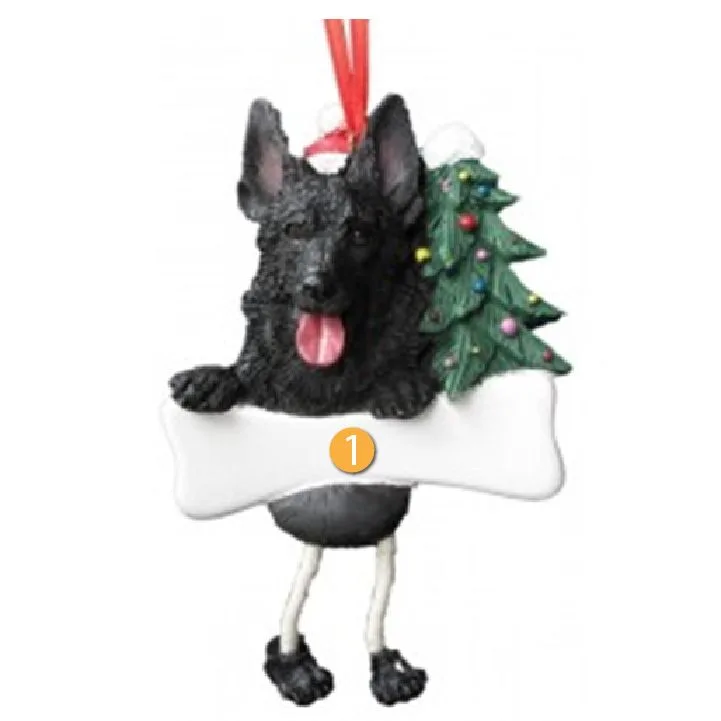 E&S Pets Personalized Black German Shepherd Dangling Legs Ornament