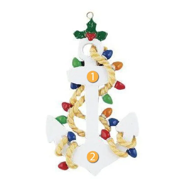 Rudolph & Me Personalized Anchors Away Ornament is a great addition to your Christmas tree decor for anyone who loves traveling and wants to remember all of their adventures. This ornament features a white anchor decorated in bright festive Christmas lights with a holly accent. Great gift idea for a family member or friend who loves to travel or has recently been on a cruise vacation!