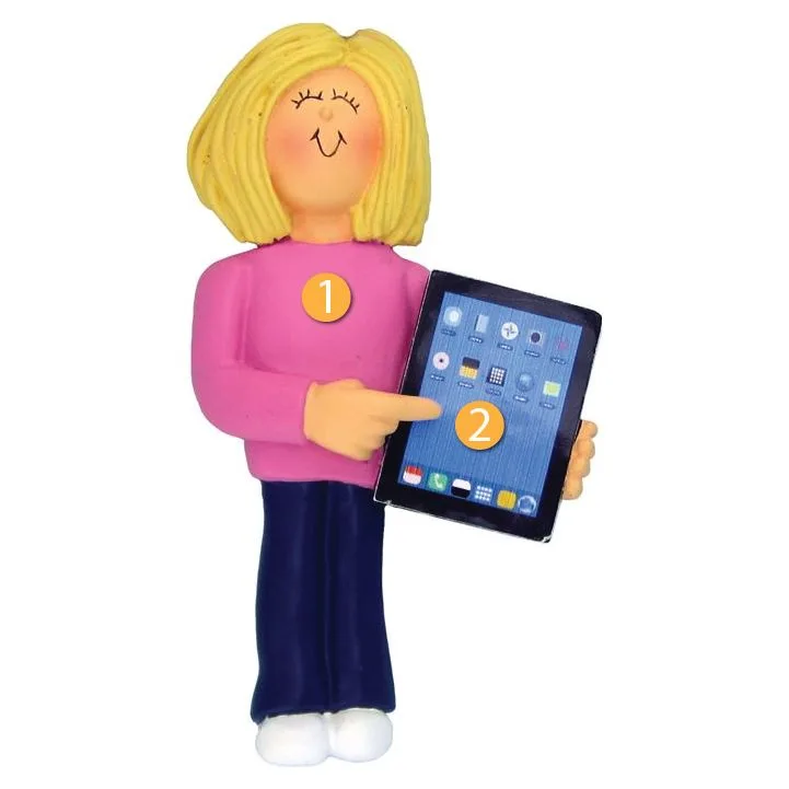 Ornament Central Personalized Blonde Female with Tablet Ornament