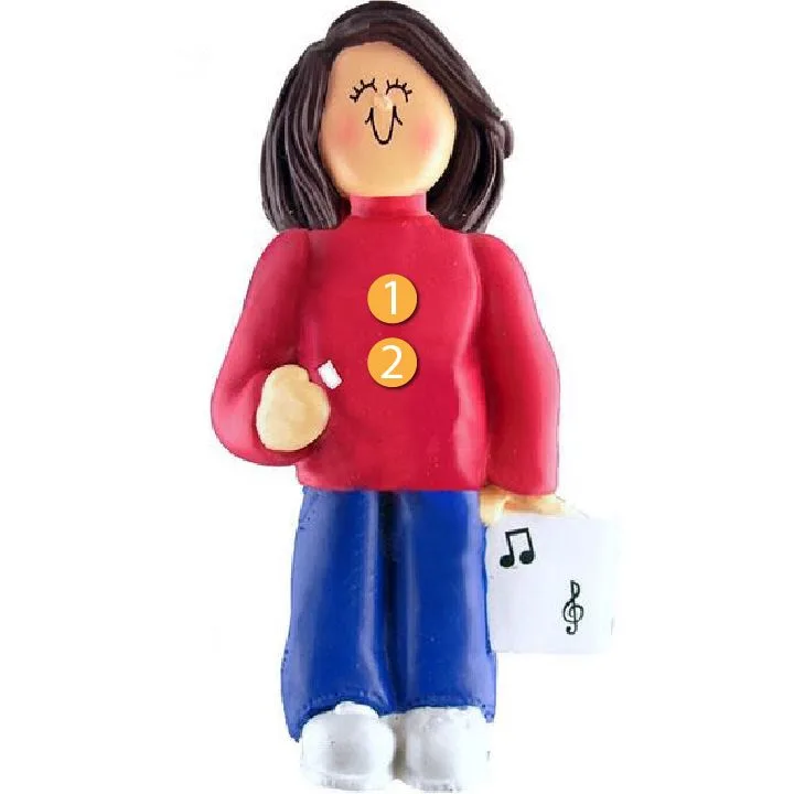 Commemorate the musician in your life with this ornament that features a female musician holding a piece of sheet music.