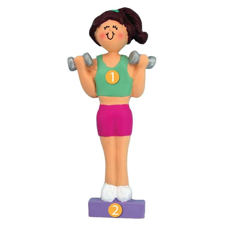 Ornament Central Personalized Brunette Female Weight Lifter Ornament