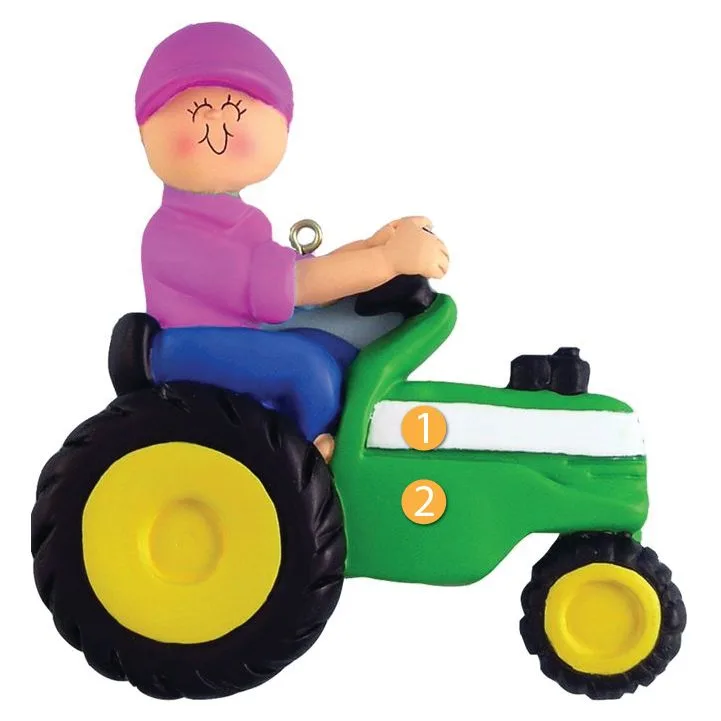 Ornament Central Personalized Woman on Green Tractor Ornament