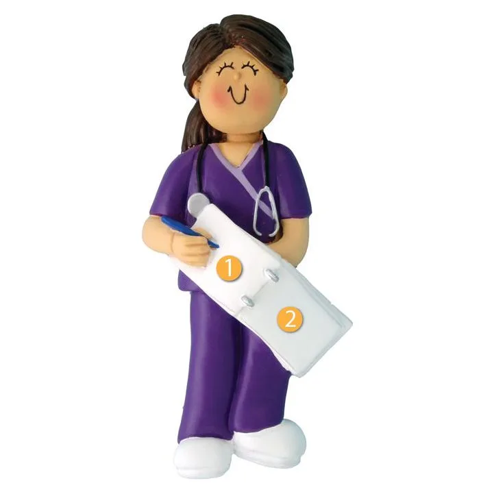 Ornament Central Personalized Female Nurse in Purple Scrubs Ornament