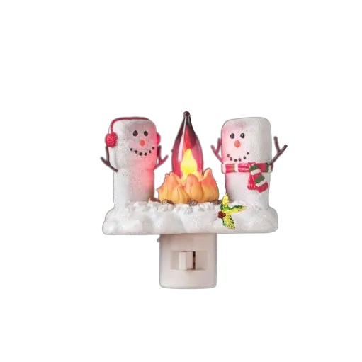 Roman Snowman Campfire Nightlight is a festive addition to your holiday decor. Featuring two marshmallow snowmen in accessories around the flaming campfire light. Place the nightlight in your bathroom, hallway, living room, or anywhere you see fit to spread the holiday spirit throughout your home with a warm glow.