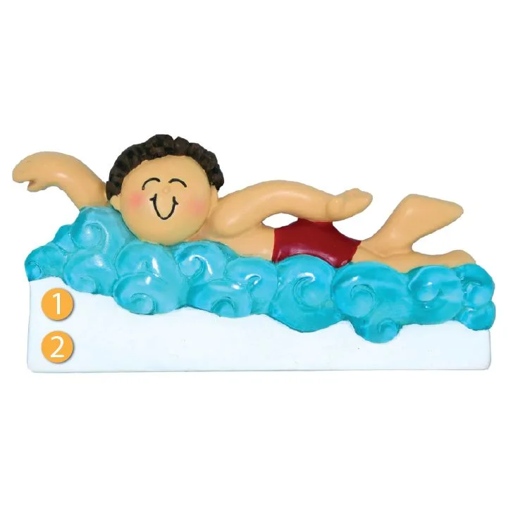 Ornament Central Personalized Brunette Male Learning to Swim Ornament