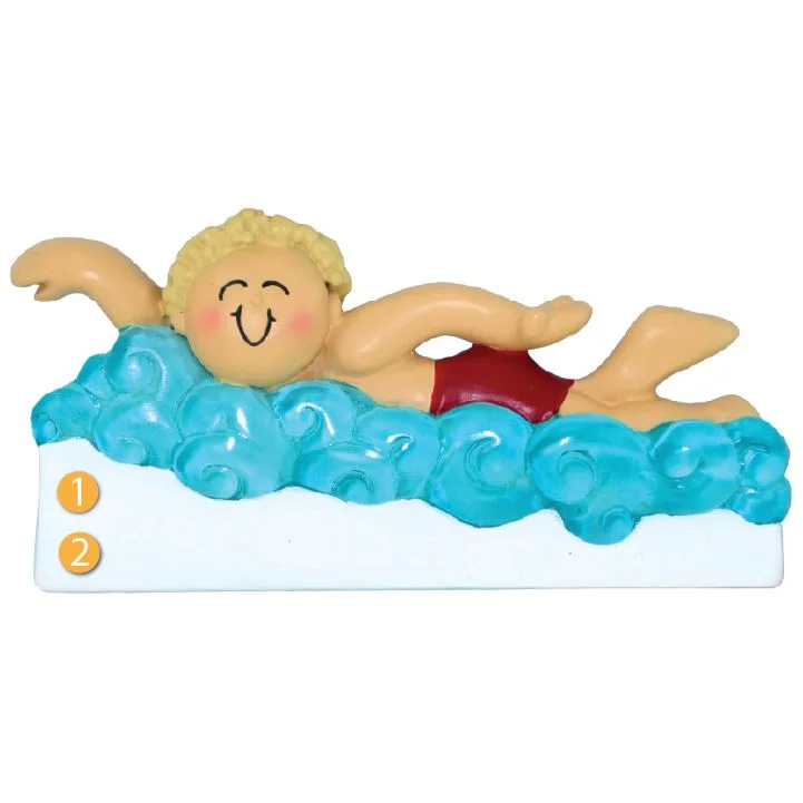 Ornament Central Personalized Blonde Male Learning to Swim Ornament