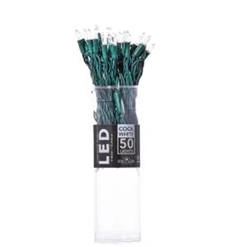 This Kurt S. Adler UL 50-light 3-millimeter cool white miniature clear LED light set is a new addition to our extensive light line. Each light set is packaged in an acetate tube with 16 tubes per PDQ. This light set offers a wide variety of commercial and residential uses and would be a terrific addition to any holiday décor.