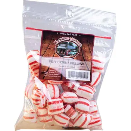 Backroad Country Peppermint Pillow are a versatile candy that can also be used as a mint to freshen up with. These mints melt in your mouth for a soothing and lasting flavor. Packaged in a 7 oz. resealable bag, these peppermints are great for on the go snacking and sharing.