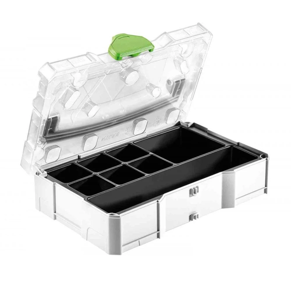 This SYS-MINI is the most compact Festool SYSTAINER yet - allowing convenient storage and clear and structured arrangement for hand tools, fasteners, and other small parts - plus it has a translucent cover that gives you a view of everything at all times. With improved organization, overview, and mobility, you can say goodbye to fruitless searching and unnecessary work, and everything is effectively protected against dust, spray water, changes in temperature, and heavy impacts. Includes SYS Mini with transparent cover and a Multi-Purpose Organizer Insert. Mini Systainers measure 10.43" wide x 6.69" deep x 2.95" high. Germany