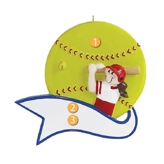 Rudolph & Me Personalized Girl Hitting Softball Ornament is a great decoration to add to your tree for someone who enjoys to play this game. This ornament features a softball background with a girl getting ready to hit a pitch. The ribbon underneath can act as a white space for you to write a personalized name or message. Great gift idea for a family member or friend who is a softball star!