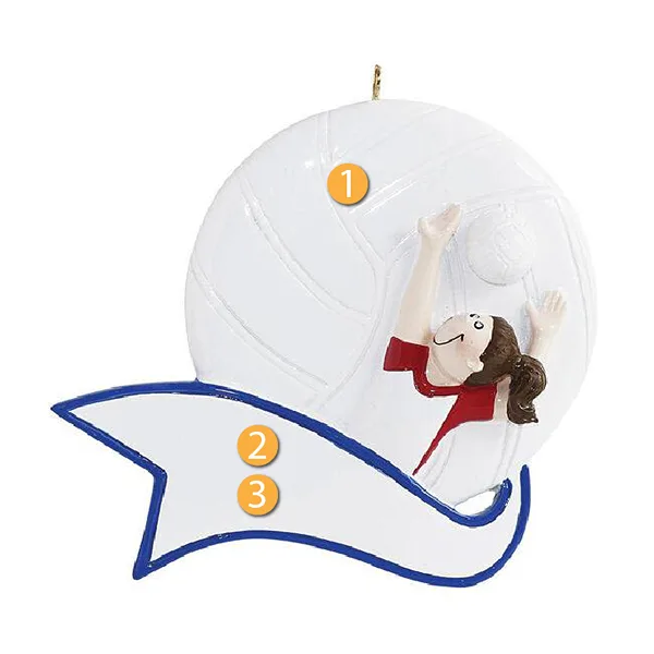 Rudolph & Me Personalized Girl Serving Volleyball Ornament is a great decoration to add to your tree for someone who enjoys to play this game. This ornament features a volleyball background with a girl getting ready to serve the ball. The ribbon underneath can act as a white space for you to write a personalized name or message. Great gift idea for a family member or friend who is a volleyball star!