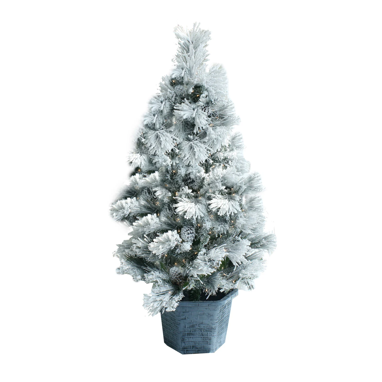 Flocked Snow Angel Potted LED Christmas Tree, 5 ft.