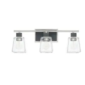 Capital Lighting Tux Black with Clear Glass Tie 3 Light Vanity, 23 in.