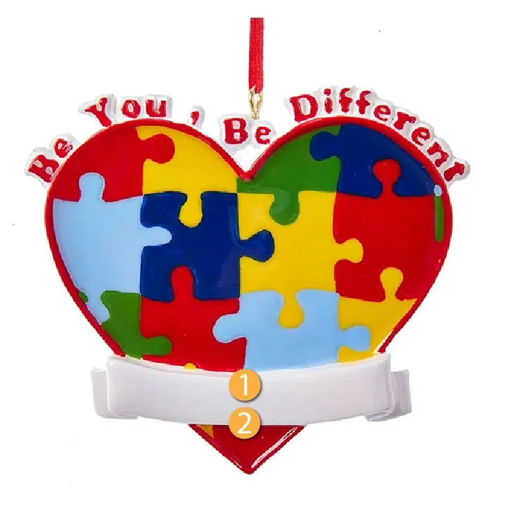 Kurt S. Adler Personalized Autism Awareness Ornament would be a great addition to your Christmas tree, especially for those who want to advocate for loved ones with Autism. This heart shaped ornament features a multi-color puzzle piece design with the message, "Be You, Be Different." A red ribbon is attached to its top so you can easily hang it. This ornament would also be a great gift idea for family members and friends in your life who have Autism. Personalization gives you the opportunity to add any sentiment in a unique way so you can create lasting and loving memories.