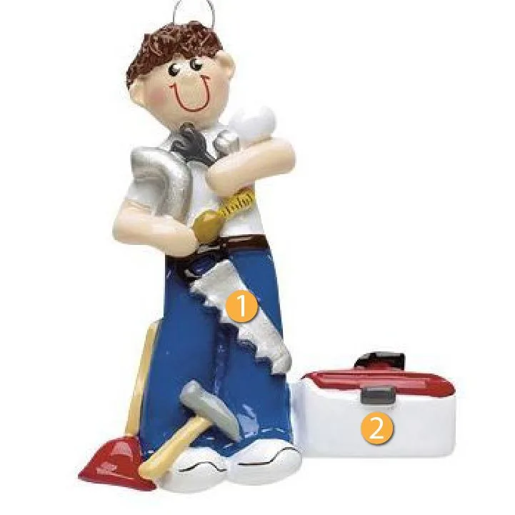 Rudolph & Me Personalized Mr. Fix It Ornament would be a great addition to your Christmas tree, especially for those who are the fixer-uppers around the house. This ornament features a man holding a bunch of tools and accessories needed for projects around the house. There are open spaces for you to write a personalized name or message. For convenience, there is a hook at the top of this ornament so you can easily put a ribbon through it to place it on the tree. A great gift idea for the handyman or handywoman in your life!