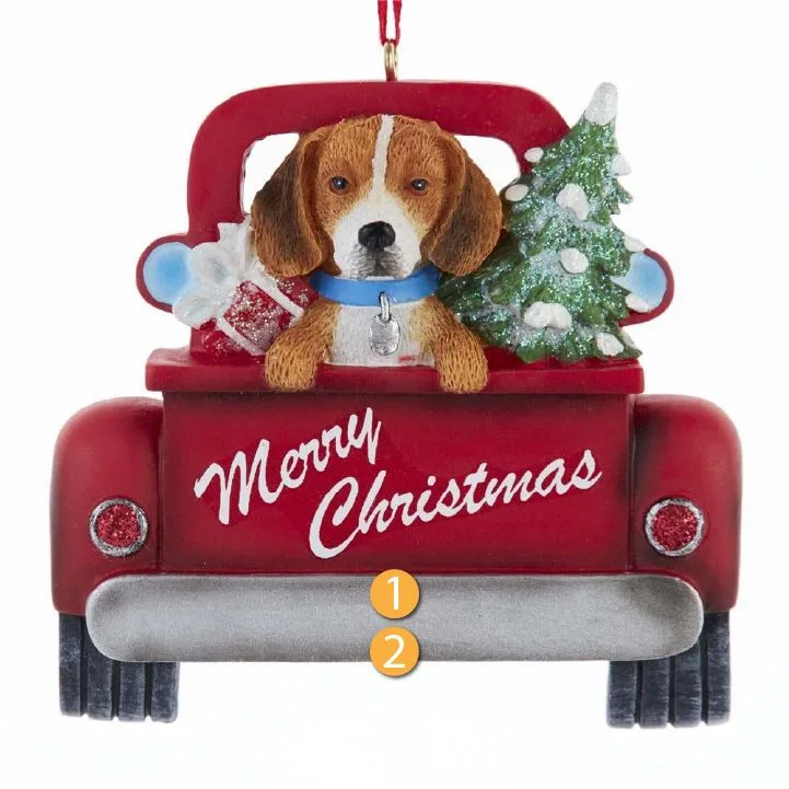 Kurt S. Adler Personalized Merry Christmas Beagle In Red Truck Ornament