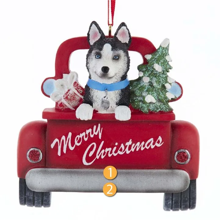 Kurt S. Adler Personalized Merry Christmas Husky In Red Truck Ornament
