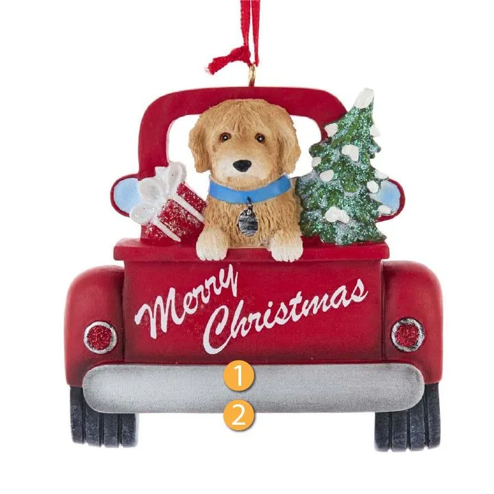 Kurt S. Adler Personalized Merry Christmas Labradoodle In Red Truck Ornament