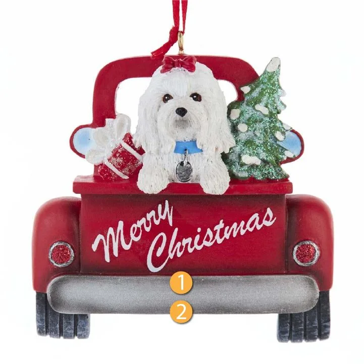 Kurt S. Adler Personalized Merry Christmas Maltese In Red Truck Ornament