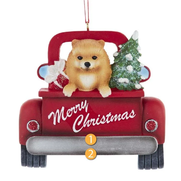 Kurt S. Adler Personalized Merry Christmas Pomeranian Pointer In Red Truck Ornament