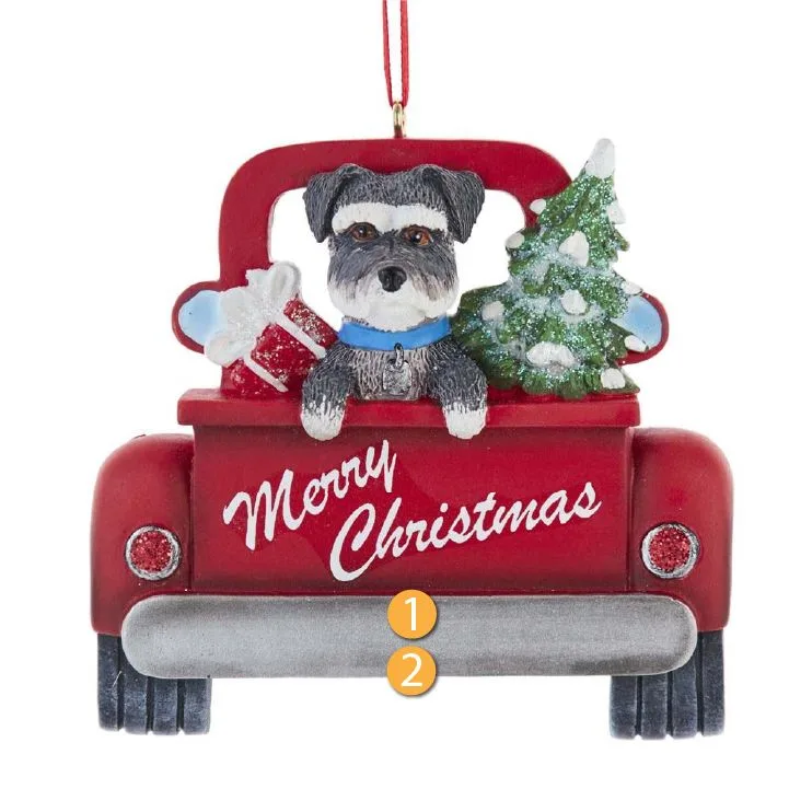 Kurt S. Adler Personalized Merry Christmas Schnauzer In Red Truck Ornament