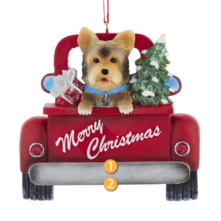 Kurt S. Adler Personalized Merry Christmas Yorkshire Terrier In Red Truck Ornament
