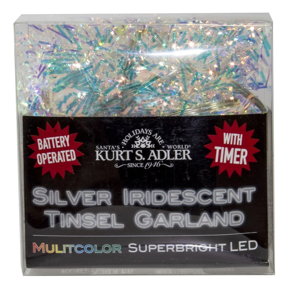 Kurt S. Adler Silver Iridescent Tinsel Garland with Multi-Colored Lights, 6.5 ft.