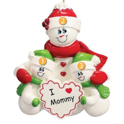 Rudolph & Me Personalized I Love Mommy Snow Ornament is a fun decoration to add to your Christmas tree to show some admiration for your mom. This ornament features two snowchildren and a snowmommy dressed in winter gear holding a heart that reads, "I Love Mommy." The white spaces on the Santa hats can act as a place for you to write a personalized message or name. Great gift idea for mothers with two children!