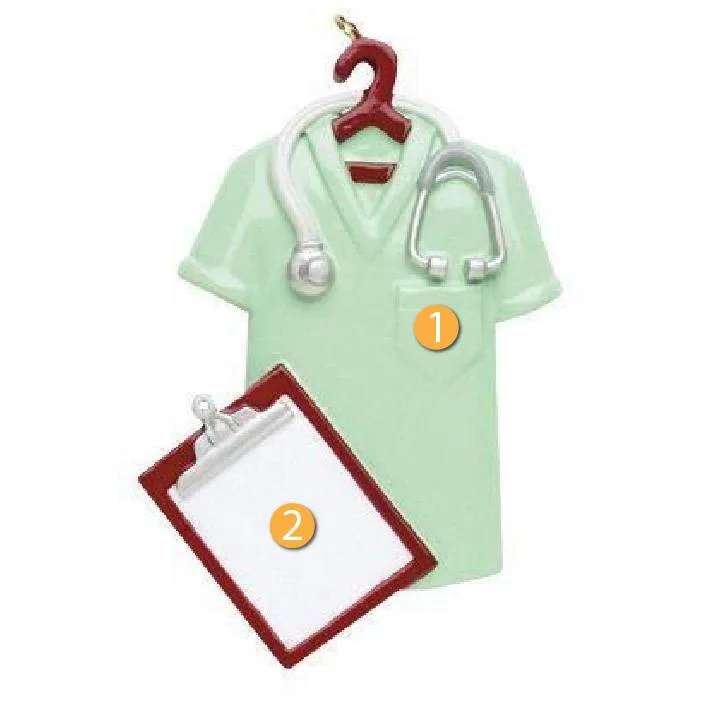 Rudolph & Me Personalized Green Scrubs Ornament is a great decoration to add to your tree for someone who is a practicing surgeon and nurse or looking to become one! This ornament features green scrubs with a stethoscope and a clip board. The white space on the clip board can act as a place for you to write a personalized name or message. Great gift idea for a family member or friend who is a nurse!