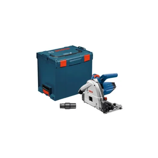 The Bosch 6-1/2-Inch Track Saw with Plunge Action offers quick and easy setup for clean finish cuts in wood and wood-based sheet materials such as laminated particle boards and plywood. It offers a 12.5-foot power cord for an extended cutting range and measurements in both the inch and metric depth scales. The saw’s plunge mechanism offers precise plunge cuts with accurate depth of cut and has a single pivot point for both bevel or non-bevel cuts. The specialized 48-tooth 6-1/2-inch track saw blade is designed to give clean, accurate results while the magnesium footplate offers durability at a lighter weight. The saw also features a variable speed motor that allows operators to match speed to material or task. The motor is protected against overheating by the tool’s Overload Protection technology while the constant electronics help it maintain it’s speed under load even in the most demanding applications. For efficient dust extraction and a cleaner working environment, this saw’s swivel hose port allows a compatible vacuum cleaner to be attached and swiveled out of the way. The saw also offers quick and easy blade changes with three-steps, a spindle lock and an on-board hex key. For additional convenience and a better cutting experience, the tracking adjustment on this tool features front and rear knobs for adjusting the precision of fit of the saw to the track. In addition, Bosch offers a full range of optional attachments for cutting versatility such as (4) different track lengths, a connector for connecting multiple tracks, an angle guide and a rip fence.