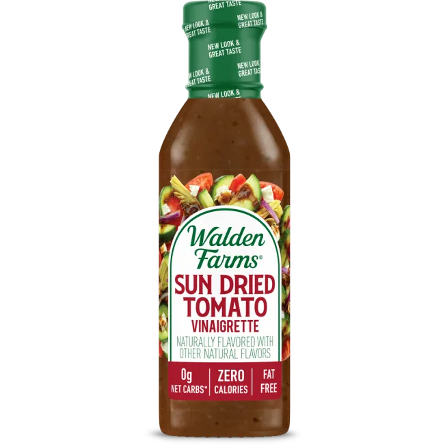 Walden Farms Sun Dried Tomato Vinaigrette Dressing is a healthier alternative to your typical store-bought dressings. This calorie free dressing features a culinary-inspired blend of herbs and spices along with simple ingredients like red vinegar and real sun-dried tomatoes that mix together to create a sweet and savory flavor. Eat right and enjoy your meal with this dressing that can be used on greens, pizzas, fruits, vegies, and grilled meats. As an added bonus, this dressing is cholesterol free, fat free, sugar free, dairy free, gluten free, vegan, Kosher, and Keto friendly. Comes in a ready to use 12 oz. pour bottle.