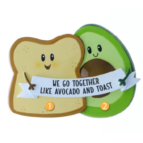 PolarX ornaments are the perfect way to create lasting, loving memories with your family and friends. Their expert style of personalization/customization gives you the opportunity to add any sentiment in a personal and unique way that is sure to touch the hearts of your loved ones. PolarX Personalized Avocado & Toast Couple Ornament is a fun decoration to admire your significant other with. This ornament features an avocado and toast pair with smiles on their faces with a ribbon that reads, "We go together like avocado and toast." Open space allows you to write a name or personalized message. Great gift for couples with a sense of humor!