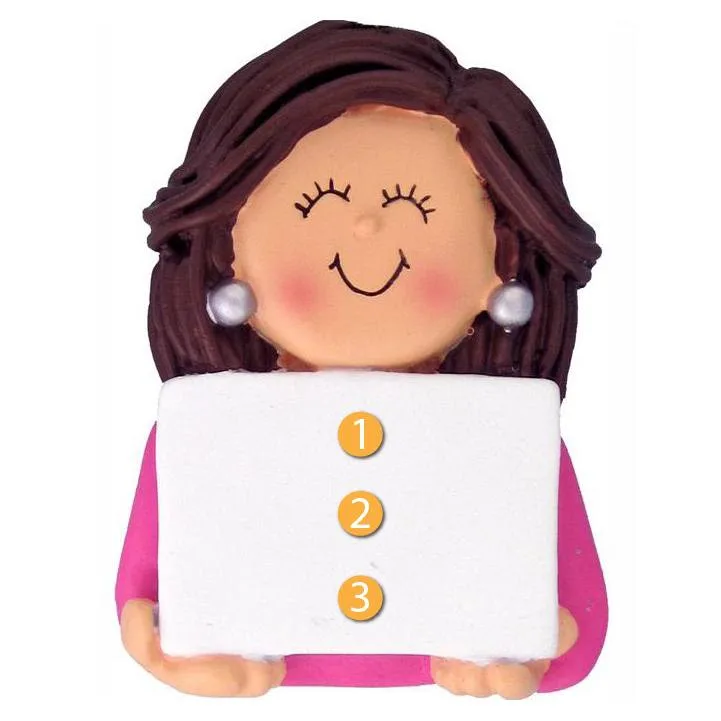 Ornament Central Personalized Female with Brown Hair & Earrings Ornament is perfect for that someone who matches these characteristics and wants to remember an achievement they had. Ideal to use for graduations, new jobs, teaching positions, and whatever else you want to remember. The open white space acts as a spot for you to write a special personalized message.