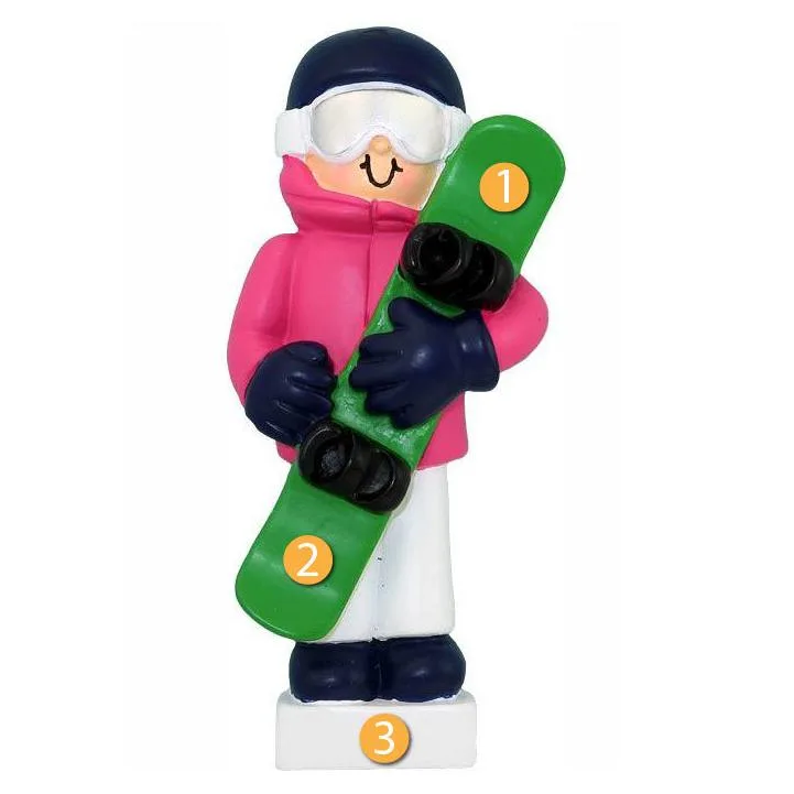 Ornament Central Personalized Female Snowboarder Ornament is a great addition to your Christmas tree decor for anyone who loves snowboarding and wants to remember all of their adventures. This ornament features a female snowboarder ready to take on a snowy hill, bundled in warm clothes holding her gear. There is a white space under the skier that can act as a spot for you to write a special message. Great gift idea for a family member or friend who loves to partake in this sport!