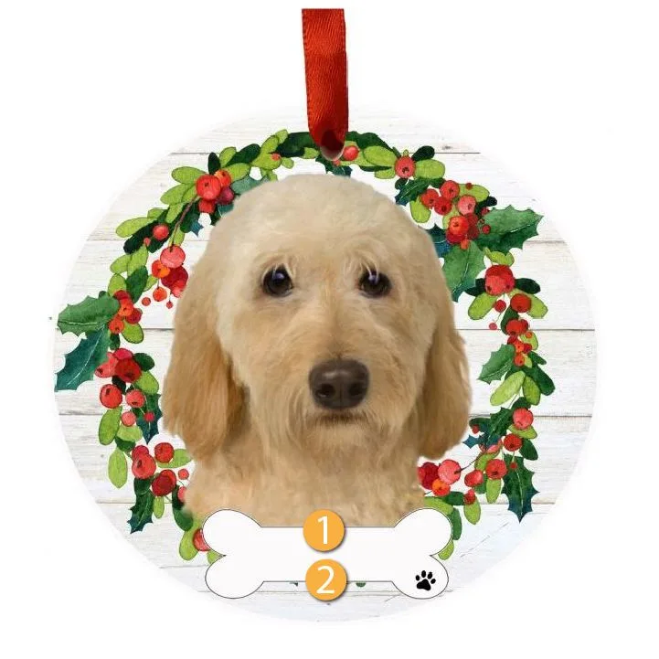 E&S Pets Personalized Cream Labradoodle Wreath Ornament
