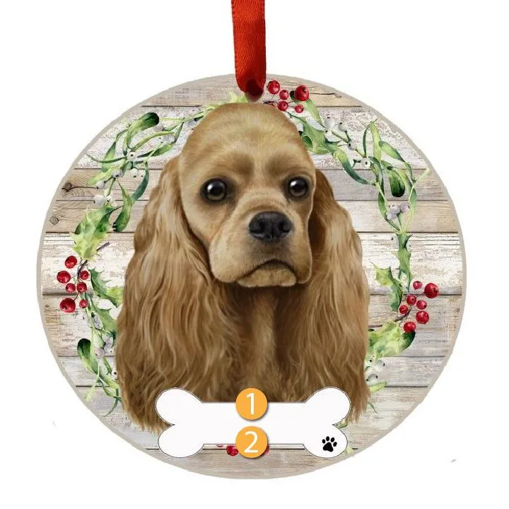 E&S Pets Personalized Buff Cocker Spaniel Face Wreath Ornament