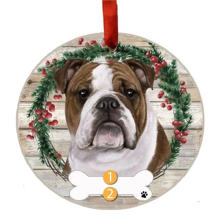 E&S Pets Personalized Bulldog Face Wreath Ornament