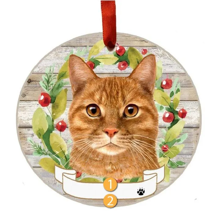 E&S Pets Personalized Orange Tabby Face Wreath Ornament