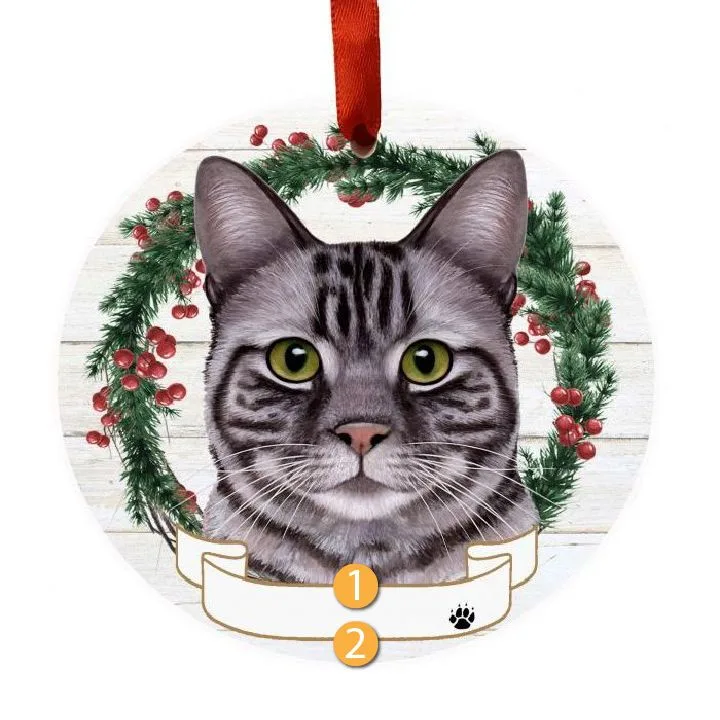 E&S Pets Personalized Silver Tabby Face Wreath Ornament