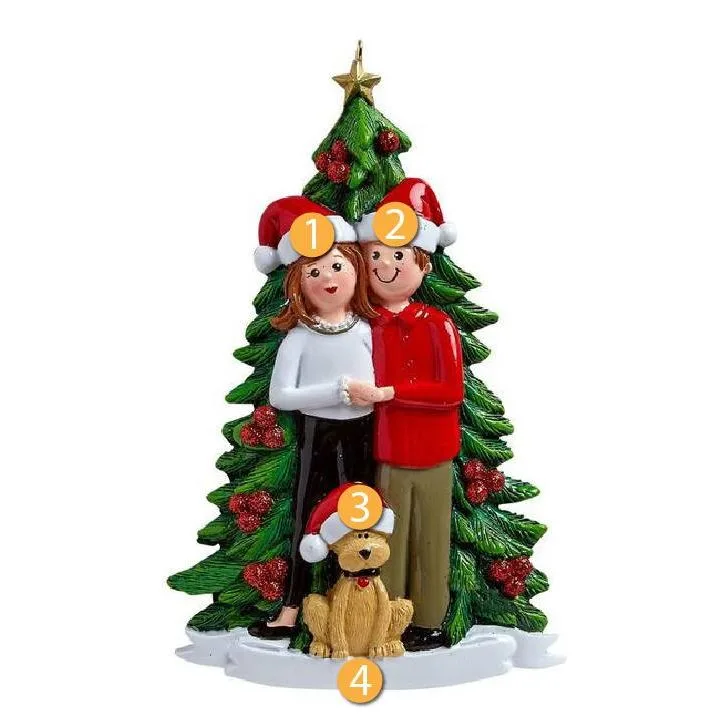 Rudolph & Me Personalized Christmas Couple with Dog Ornament is the perfect decoration for those who want to show some love for their furry friend. This ornament features a happy festive couple in front of their Christmas tree proud to show off their dog who is wearing a matching Santa hat. The bottom ribbon has a white space for you to create a personalized message. Great gift idea for a family member or friend who loves their dog!