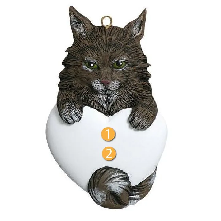 Rudolph & Me Personalized Maine Coon Cat Ornament is the perfect decoration for those who want to show some love for their furry friend. This ornament features a loveable Maine coon cat holding a white heart, acting as a space for you to write a special personalized message. For convenience, this ornament has a hoop at the top so you can easily thread a ribbon through to place on the tree. Great gift idea for a family member or friend who loves their cat!