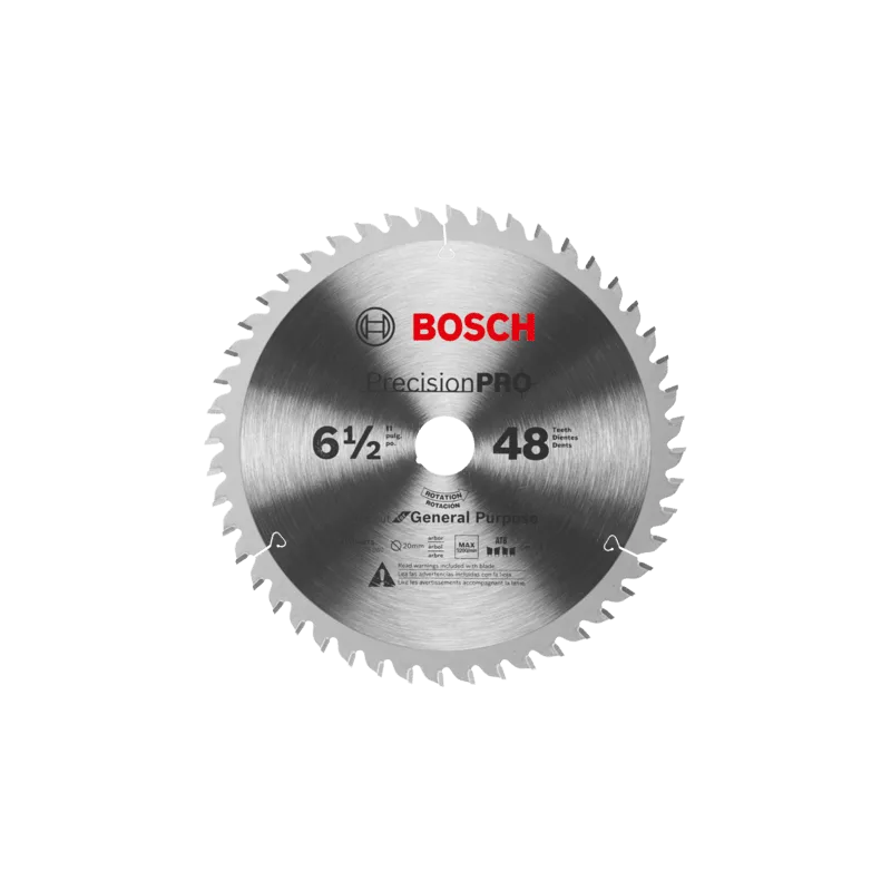 This Bosch 6-1/2" 48-Tooth Precision Pro Series Track Saw Blade is designed for making very precise, fast and smooth cuts in sheet goods. It features blade tips constructed of durable carbide for ultimate impact resistance and longevity. The steel plates are built of hardened-steel to minimize deflection and offer accurate plunge and finish angle cuts. The teeth are designed with an alternate top bevel, an optimized hook angle and an antifriction coating which deliver smooth, quality cuts. Plus, the blade has specially designed anti-vibration slots which lessen noise and significantly reduce vibration.
