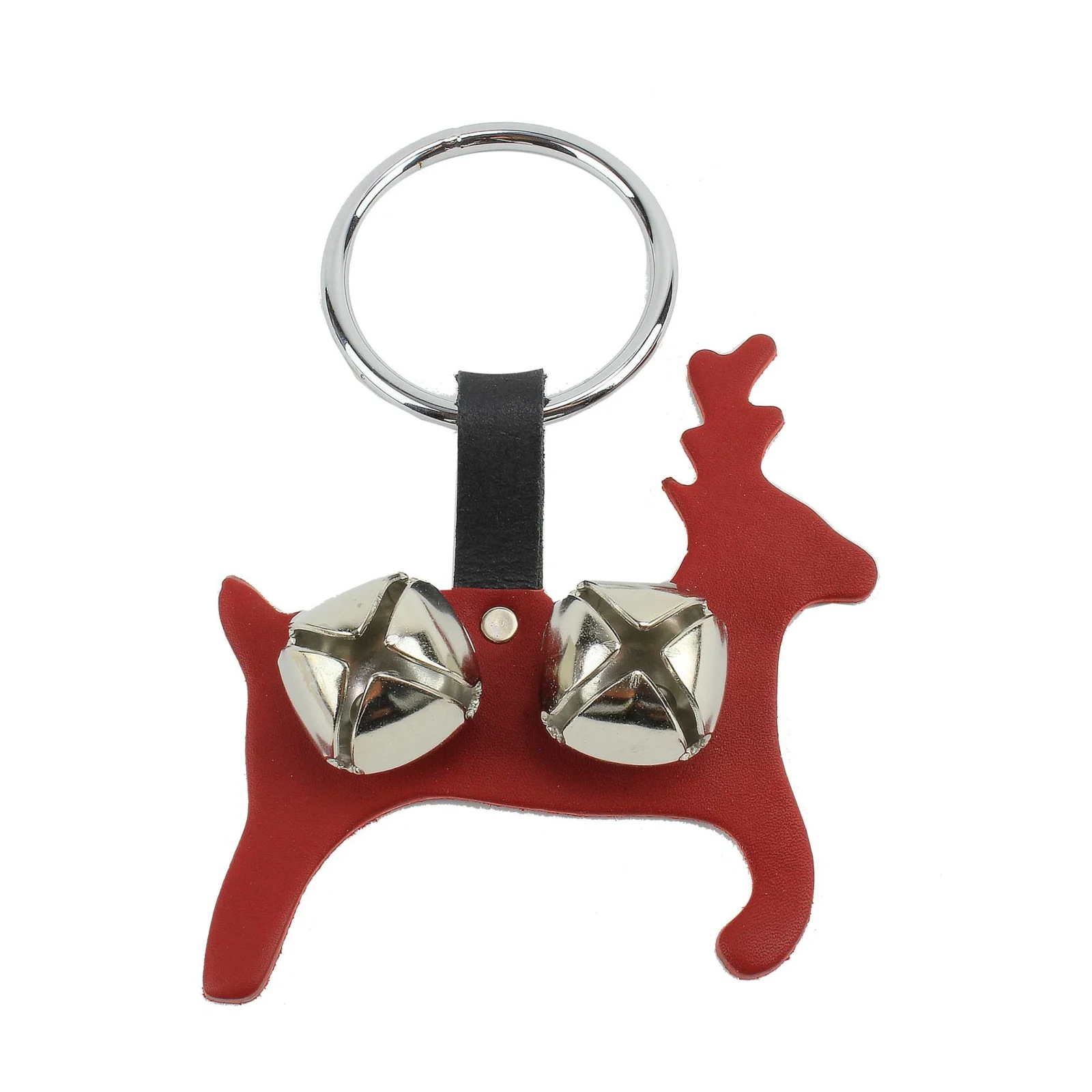 Bellmeister Red Leather Reindeer Bell Door Hanger is great to add to your winter time indoor or outdoor decor. This door hanger is hand-made with red leather and is cut out to establish characteristics of a reindeer. The 3 in. O ring that connects the reindeer to the door is made from silver brass plated steel and is able to fit over most door handles. Can be placed on doors inside that are commonly used, or ones outside letting you know company has arrived. Perfect idea for a stocking stuffer!