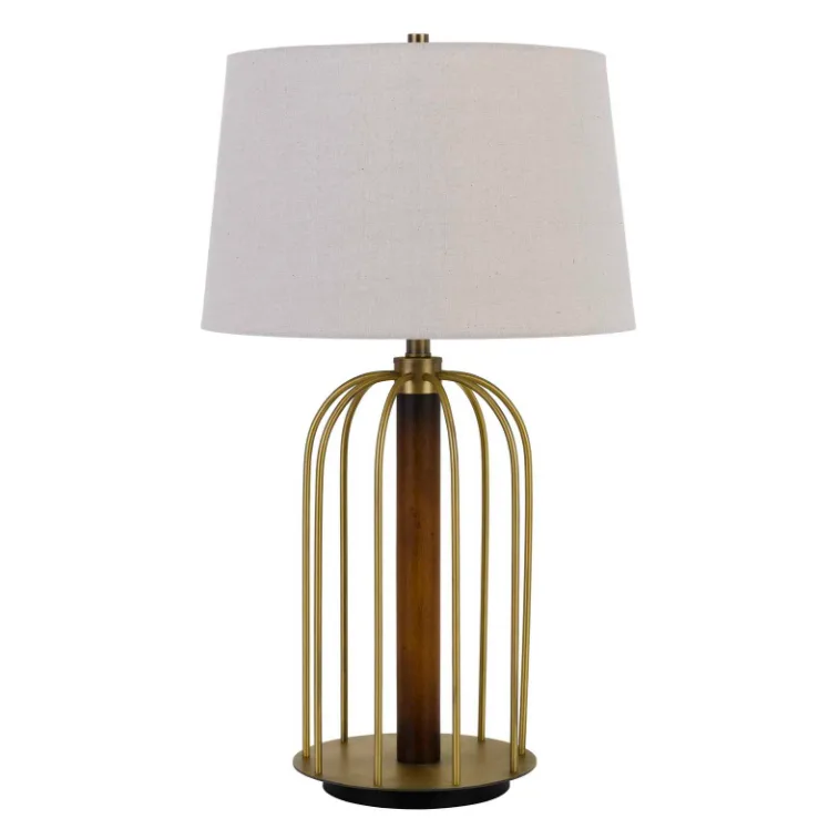 Cal Lighting Sevran Wood & Metal Lamp is a fun and unique way to add accent your furniture. Made of durable metal construction, this lamp features an urn style cage design with a hardback linen shade, giving your home more of a vintage look. Its pull chain switch turns the light on and off and includes a three way setting. Measures 18 in. L. x 18 in. W. x 30.5 in. H. with a 7.5 in. base diameter.
