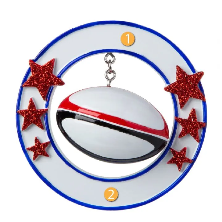 PolarX Personalized 3D Rugby Ball Ornament would be a great addition to your Christmas tree, especially for those who enjoy participating in this sport. This ornament features a rugby ball dangling from the center with glittery red stars surrounding it. A hook is attached to its top so you can easily tie a ribbon to hang it. This ornament would also be a great gift idea for those in your life who like to compete or play rugby for fun. Personalization gives you the opportunity to add any sentiment in a unique way so you can create lasting and loving memories.