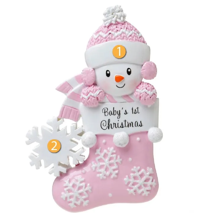 PolarX Personalized Baby Snowman in Pink Stocking Ornament