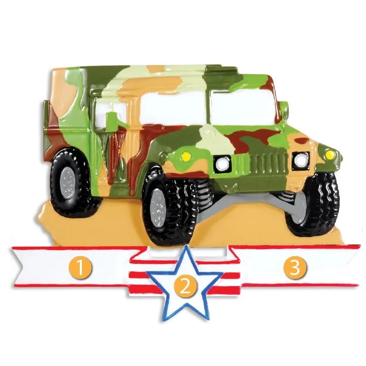 PolarX Personalized Armed Forces Humvee Ornament would be a great addition to your Christmas tree, especially if you want to pay tribute to someone fighting for our country. This ornament features a camo army Humvee riding along a dirt road. A hook is attached to its top so you can easily tie a ribbon to hang it. This ornament would also be a great gift idea to show some appreciation for a friend or family member serving. Personalization gives you the opportunity to add any sentiment in a unique way so you can create lasting and loving memories.